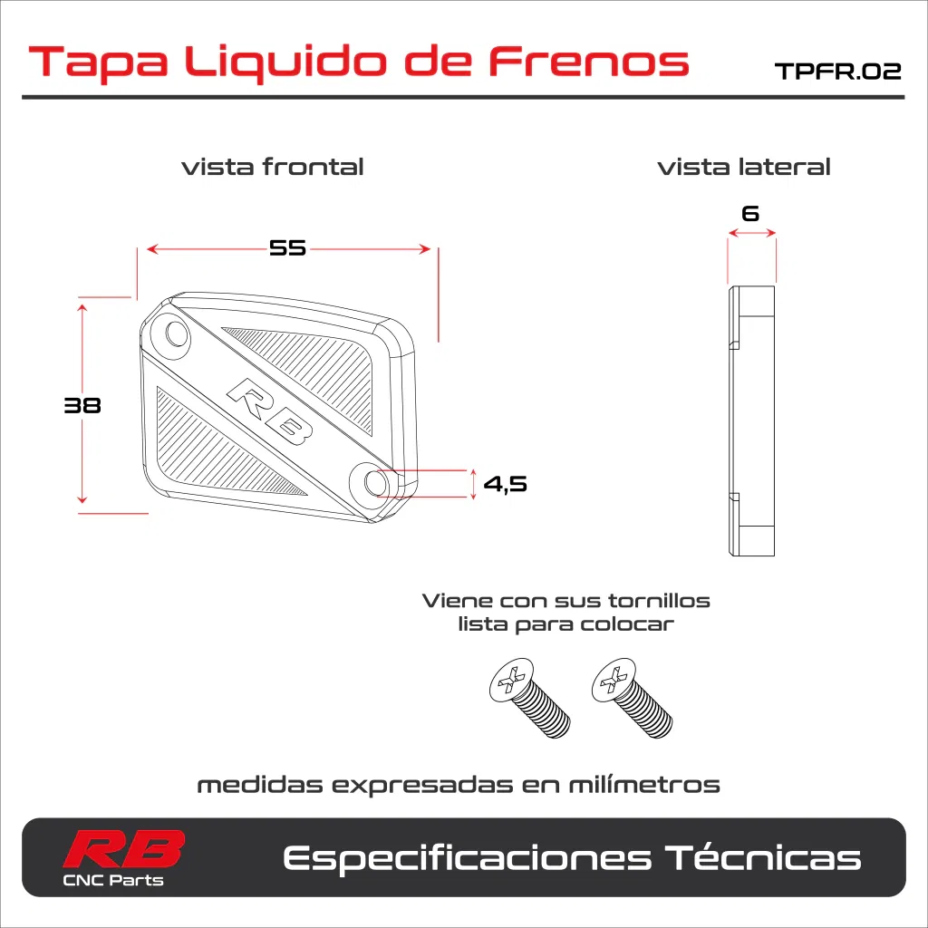Incluye: 1 Tapa liquido de Freno + 2 Tornillos